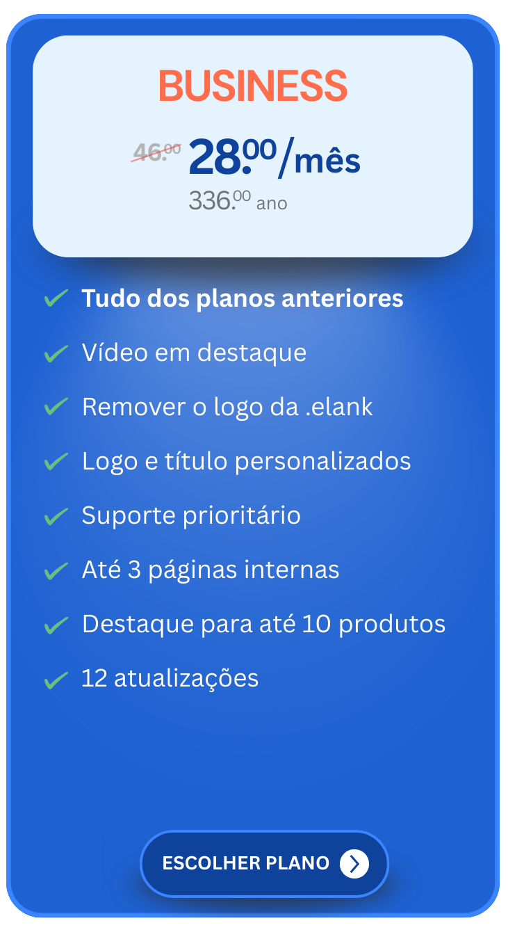 As redes sociais têm limites. A bio do Instagram, por exemplo, só permite 150 caracteres — e isso mal dá pra dizer quem você é. Com a .elank, você cria uma micro página personalizada que mostra tudo: seus produtos, serviços, contatos e redes, tudo reunido em um só link fácil de compartilhar.